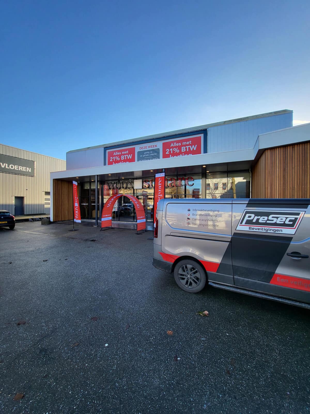 Voor Woonsquare in Capelle aan den IJssel leverden wij zowel de camerabeveiliging als de brandmeld- en ontruimingsinstallatie. Het IP‑camerasysteem zorgt voor scherp overzicht in de showroom, het magazijn en het buitenterrein, waarbij slimme AI‑detectie verdachte situaties direct herkent.